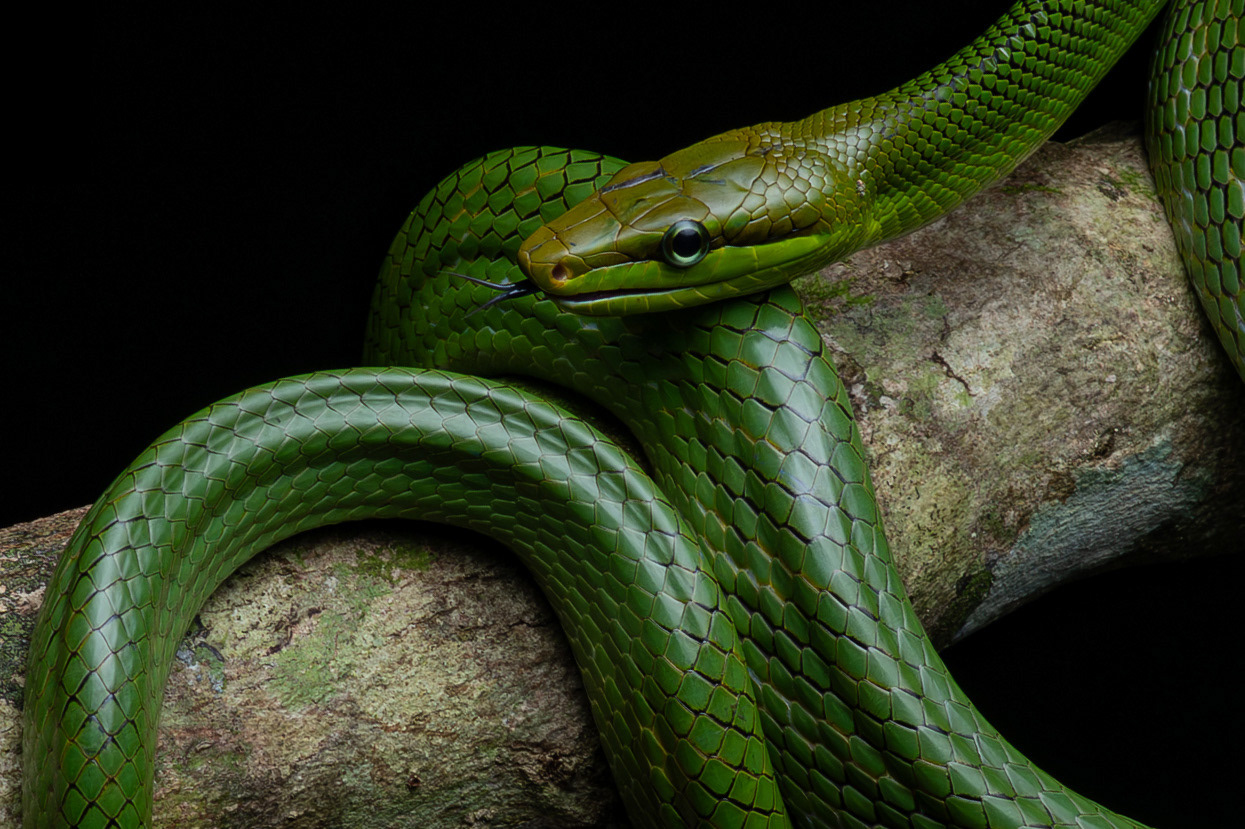 Juvenile green cat snake (Boiga cyanea)
